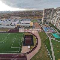 Инфраструктура: В доме чистая парадная, три лифта, просторный холл. На первых этажах комплекса есть магазины, кафе, пункты выдачи, аптеки и пр. Благоустроенный двор, детский сад, школа, стадион, открытая парковка и многоуровневый паркинг.