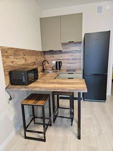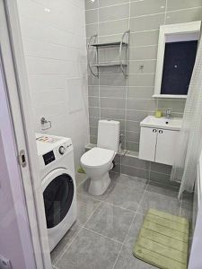 - Мебель: кровать на 2 спальных места, кухонный гарнитур, барный стол со стульями, мебель в ванной комнате и прихожей;