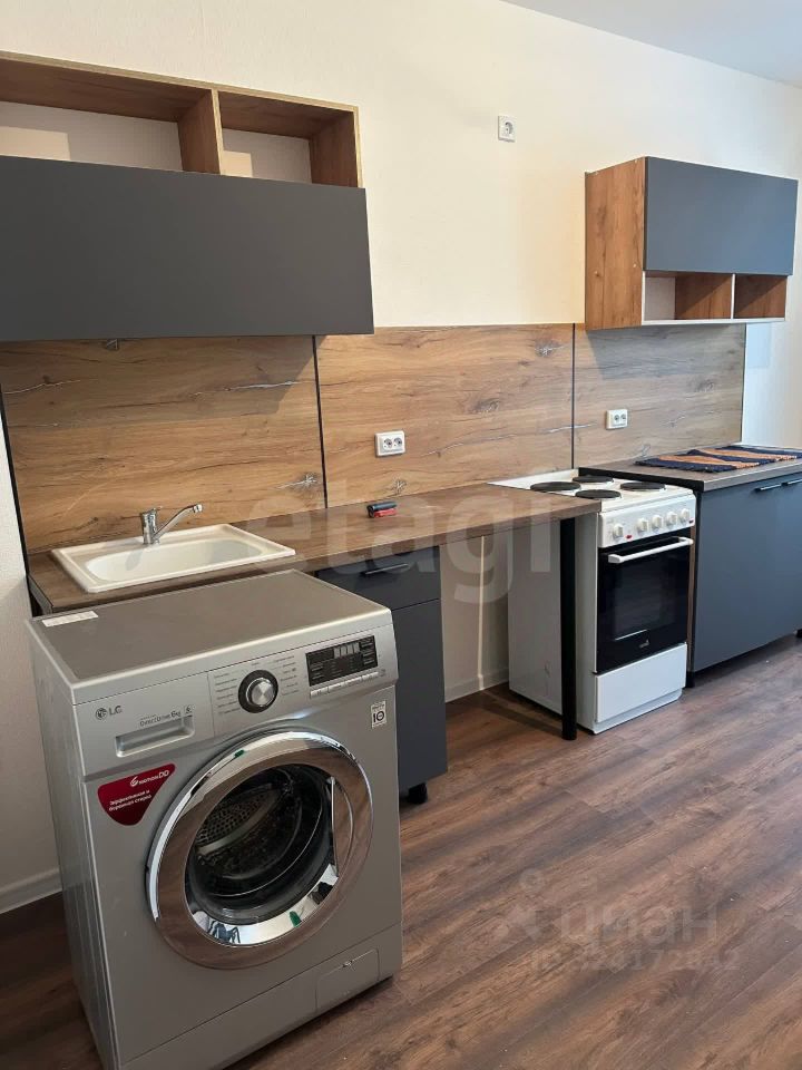 Кухня оборудована функциональным гарнитуром, обеденным столом и четырьмя стульями.Холодильник готовы приобрести вместе с диваном.