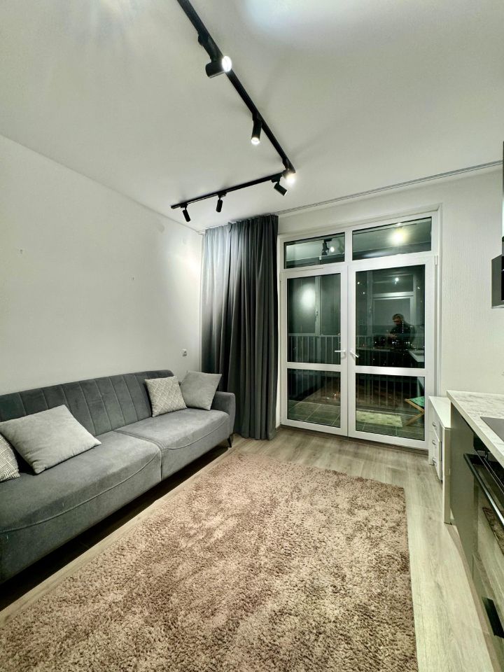 Квартира обустроена всей необходимой мебелью и оборудованием для комфортного проживания (кухонный гарнитур ведущtй компании Maria, раскладной диван, кровать, микроволновая печь, большая посудомойка, кофемашина, холодильник, стиральная машина, электрическая плита, духовой шкаф, телевизор, робот пылесос, Шкафы в прихожей, комнате и на балконе, сделанные на заказ, wi-fi+роутер).