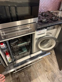 Кухня полностью укомплектована техникой, новая посудомоечная машина.