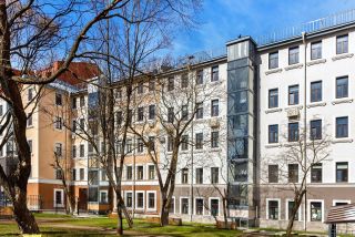 Вид из окон выходит во внутренний зеленый ухоженный двор. Во дворике есть зона отдыха.