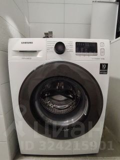 Ванная комната — с тёплыми полами, двумя зеркалами и новой стиральной машиной.