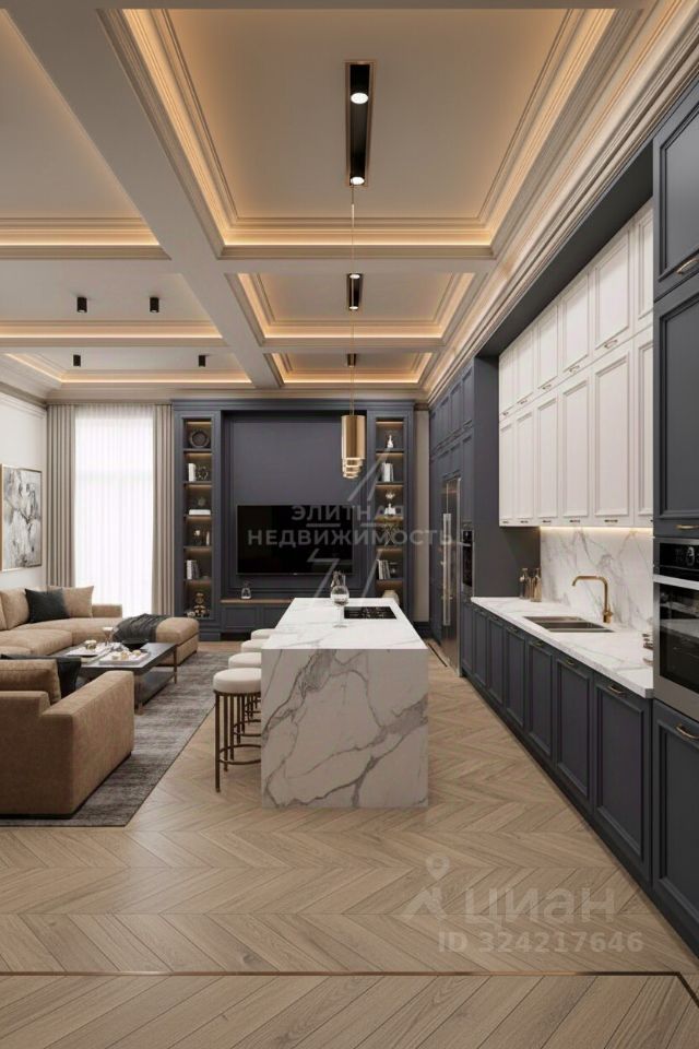 Просторная гостиная с панорамными окнами наполнена естественным светом, подчеркивающим сбалансированные пропорции и изящные линии интерьера. Функциональная кухня-столовая оснащена высококачественной встроенной техникой и организована с учетом повседневного удобства. Уютные спальни с камерной атмосферой обеспечивают приватный отдых, а продуманная организация пространства демонстрирует заботу о качестве жизни.