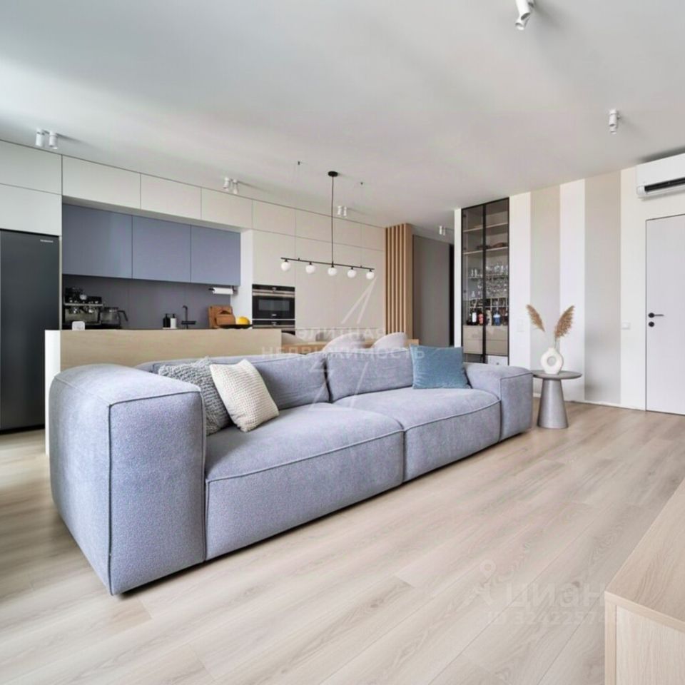 Пространство продумано так, чтобы дарить чувство простора: высокие потолки создают особую атмосферу воздушности, а светлые тона в отделке наполняют квартиру солнечным светом. Каждая деталь интерьера призвана подчеркнуть уют и элегантность — здесь легко представить и тихие семейные вечера, и дружеские посиделки с видом на природу.