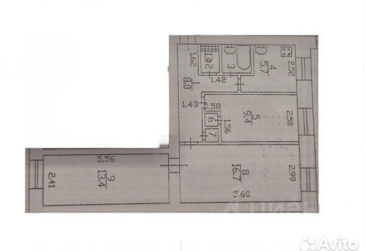 57,3 м²