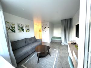 Квартира после капитального ремонта, оборудована всей необходимой для проживания мебелью и современной техникой, в том числе телевизором, встроенным двухкамерным холодильником, варочной панелью и духовым шкафом с функцией СВЧ, посудомоечной и стиральной машинами. Небольшая гардеробная во входной группе.