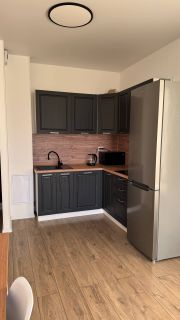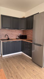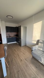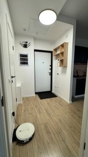 Полностью укомплектована мебелью: раскладной диван, кухонный гарнитур, обеденный стол со стульями, прихожая.