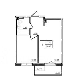 Планировка: просторная кухня-гостиная (16 м²) и большая застеклённая лоджия с распашными дверями — летом может использоваться как терраса.
