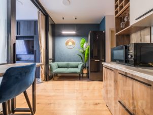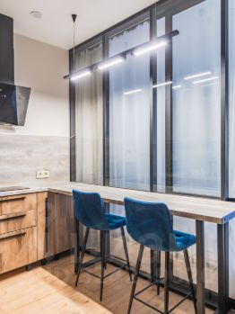 Дизайнерский ремонт создаёт атмосферу уюта и комфорта, а высокие потолки добавляют пространству воздуха и свободы.