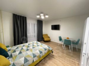 В студии выполнен дизайнерский ремонт, а значит, вас порадует стильная и современная обстановка. В комнате и на кухне есть вся необходимая мебель. Из техники в вашем распоряжении: холодильник, телевизор со SMART-TV и стиральная машина, душевая кабина, шторы с эффектом Black out, раскладное кресло-диван.