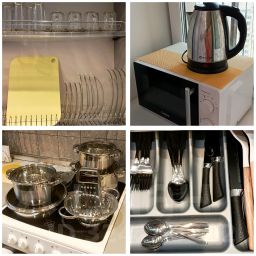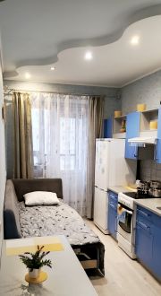 Квартира имеет всё для комфортного проживания: холодильник, стиральная машина, кондиционер, утюг, пылесос, гладильная доска, два телевизора, микроволновка, чайник, интернет.