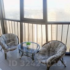 Панорамная лоджия с уютными креслами скрасит Ваше времяпрепровождение любуясь видами на "Кукурузу" или вечерний/ночной город.