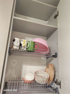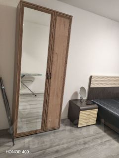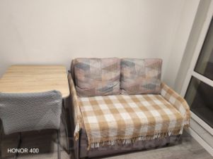 В квартире есть всё необходимое для комфортного проживания: кухня с обеденной зоной и раскладывающимся диваном. На кухне также повешаю еще шторы. Мебель в комнате и ТВ, а также вся необходимая техника — холодильник, телевизор и стиральная машина, микроволновка, духовой шкаф. Ванная комната оборудована ванной.