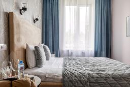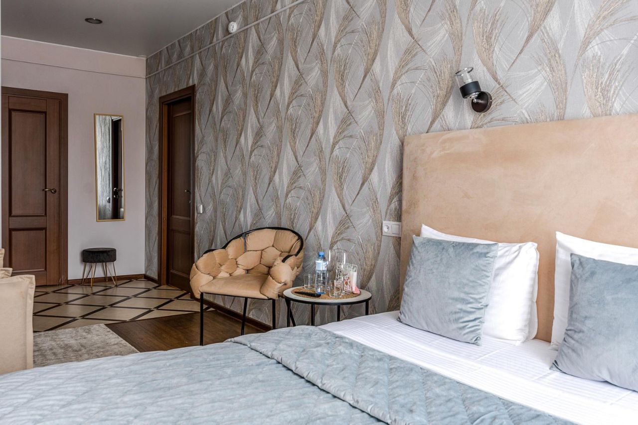 Двухместный номер с удобствами в номере. В номере имеется: кабельное телевидение, телевизор с плоским экраном, ванная комната, банные принадлежности, гигиенические средства, тапочки, гостиничная парфюмерия, Wi-Fi, двуспальная кровать, вешалки, журнальный столик, зеркало, кресла, питьевая вода, стаканы