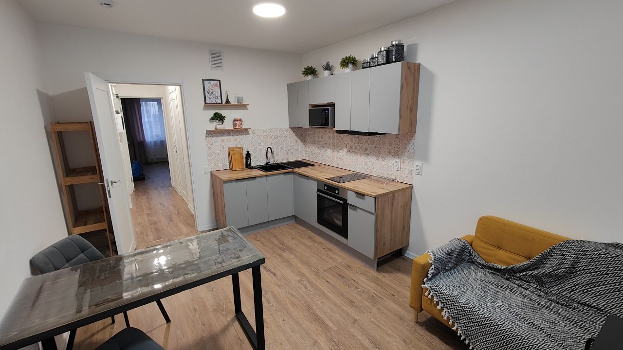 Впервые сдаётся уютная однокомнатная квартира с евроремонтом в новом доме, построенном в 2024 году. Площадь квартиры составляет 31.6 кв. м, из которых 11.1 кв. м — это жилая зона, где будет двухспальная кровать 140*200 с жёстким матрасом фирмы "Аскона". Просторная кухня занимает 15 кв. м, имеется диван со спальным местом 140*200, новая техника фирмы "gorenje", фильтр для воды, столовые приборы, посуда.
