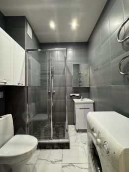 В квартире выполнен евроремонт, обстановка современная и стильная. Всё помещения правильной формы. В наличии необходимая мебель как на кухне, так и в комнате. Из техники есть холодильник, посудомоечная машина Weisgauff и стиральная машина Aniston. установлена индукционная варочная поверхность и духовой шкаф, есть микроволновая печь , чайник Bork. Ванная оборудована душевой кабиной и электрическим полотенцесушителем. Просторная светлая комната, с двумя удобными креслами и новой 2-спальной кроватью с ортопедическим матрасом, которая при необходимости легко трансформируется в шкаф и освобождает полезное место. Также имеется широкая лоджия с местом для отдыха и отделением для дополнительного хранения.