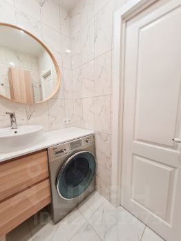 В ванной комнате установлена стиральная машина (чисто, аккуратно).