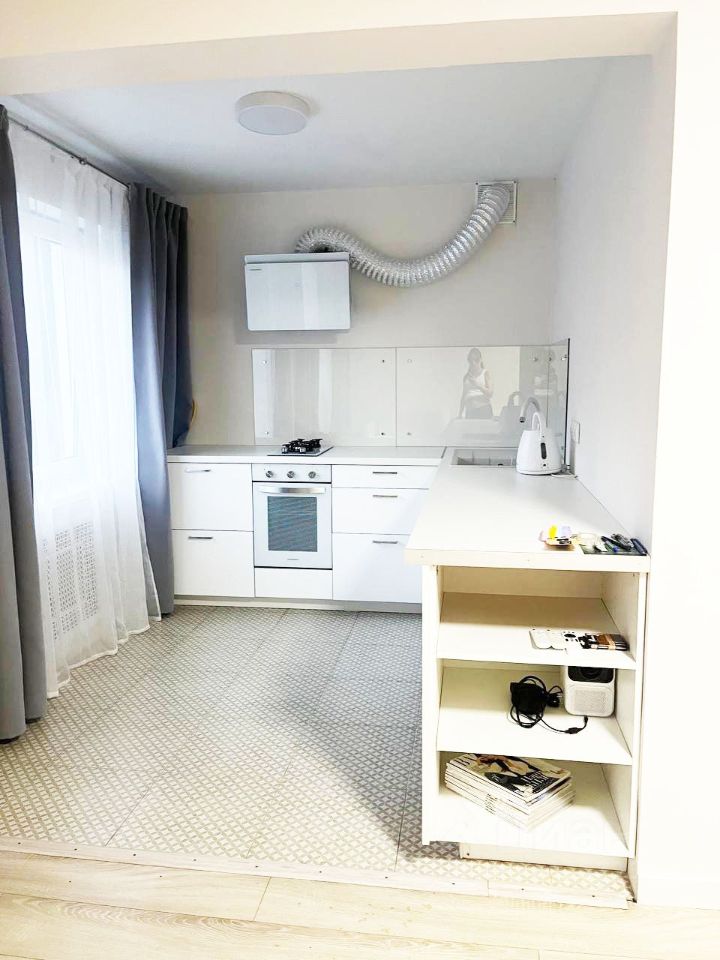 В квартире сделан евроремонт, есть вся необходимая мебель — как в комнатах, так и на кухне. Из техники: холодильник, посудомоечная и стиральная машины, установлен фильтр для воды. Санузел совмещенный, в ванной комнате установлена ванна. Также имеется балкон, где можно отдохнуть на свежем воздухе.