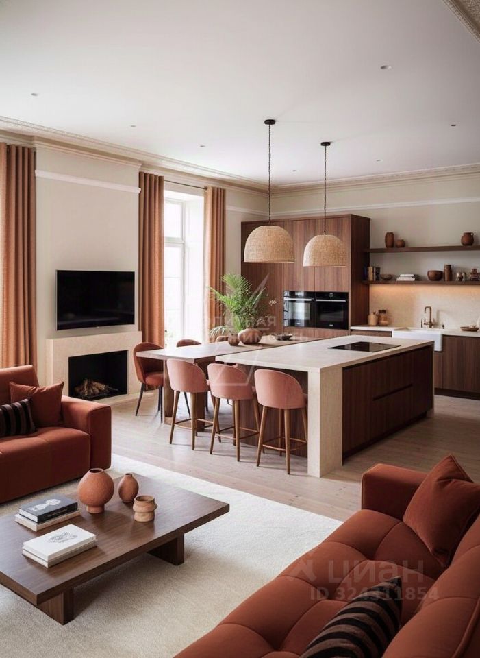 Просторная гостиная с панорамными окнами наполнена естественным светом, подчеркивающим сбалансированные пропорции и изящные линии интерьера. Функциональная кухня-столовая оснащена высококачественной встроенной техникой и организована с учетом повседневного удобства. Уютные спальни с камерной атмосферой обеспечивают приватный отдых, а продуманная организация пространства демонстрирует заботу о качестве жизни.