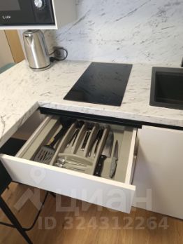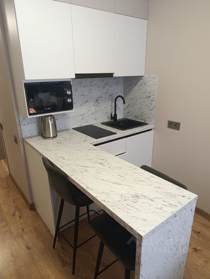 В квартире выполнен дизайнерский ремонт, что создает атмосферу уюта и современного стиля. Пространство студии организовано эргономично: здесь есть все необходимое для комфортного проживания. Кухня оборудована мебелью и техникой, включая холодильник и стиральную машину. В комнате установлены кондиционер и телевизор. Совмещенный санузел оснащен душевой кабиной. Окна выходят на улицу и во двор, поэтому в квартире всегда светло.