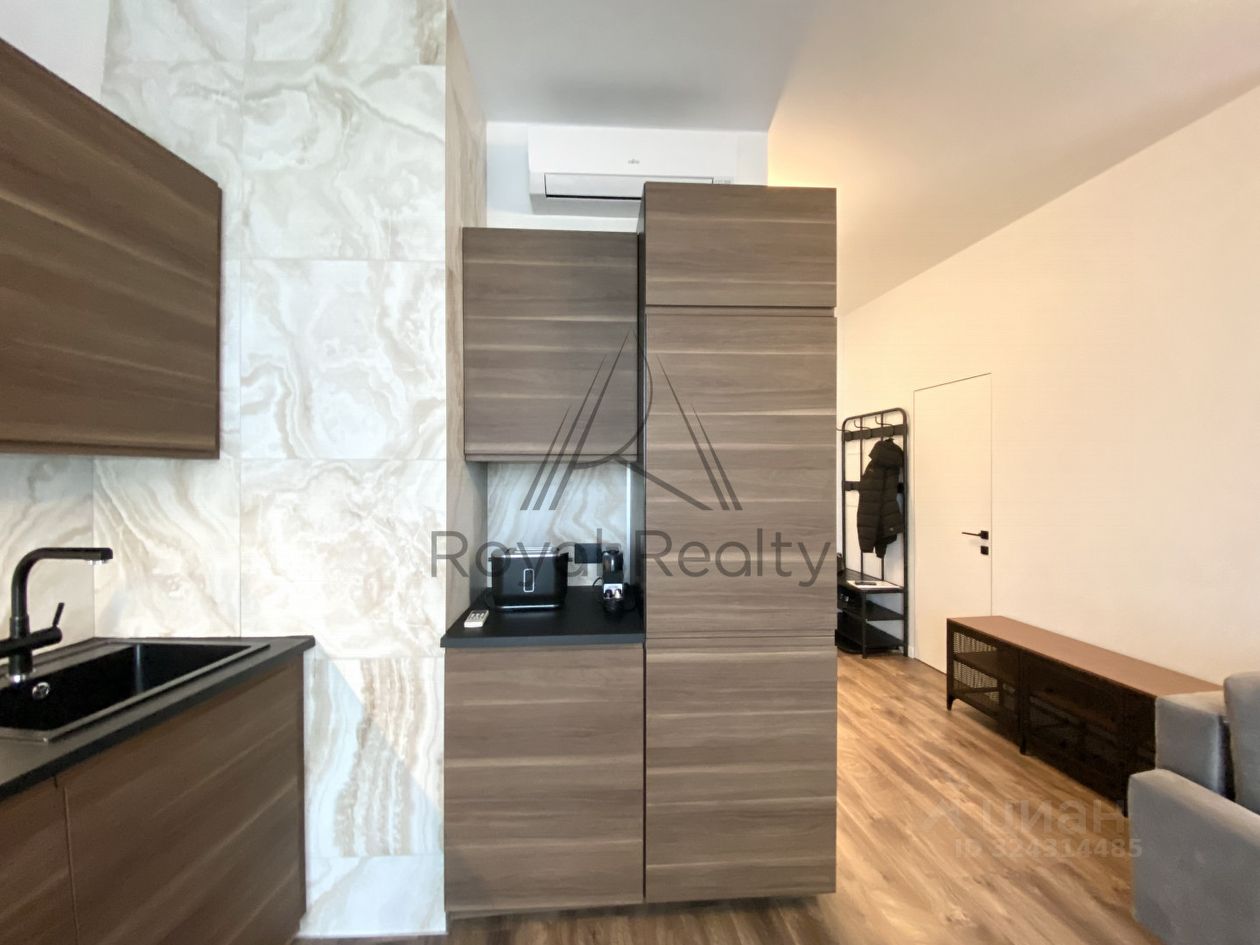 Квартира полностью готова к проживанию — выполнен качественный дизайнерский ремонт, установлена вся необходимая мебель и бытовая техника.