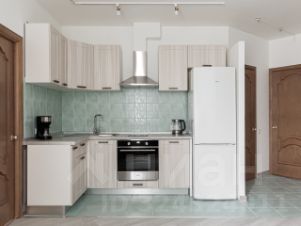 Квартира состоит из просторной кухни-гостиной и двух изолированных комнат (в каждой есть свой шкаф-купе), а также застекленной лоджии, совмещенного санузла и прихожей с двумя встроенными шкафами.