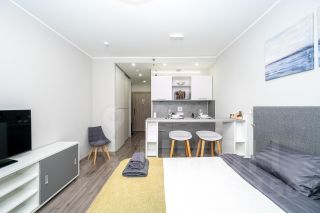 Новая стильная и просторная квартира с большими окнами и собственной кухней. Уникальное расположение всего в 50 метрах от входа в метро, позволяет добраться за 30 минут до любой точки города.