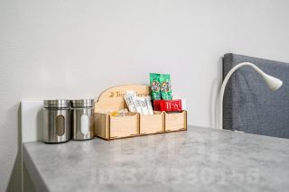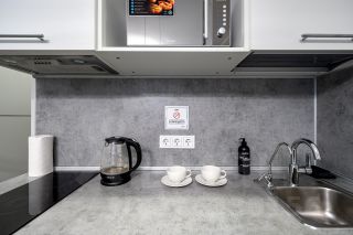 - В кухонной зоне: фильтр для воды, микроволновая печь, плита, холодильник, чайник, посуда и столовые приборы на любой случай. Чай, кофе, сахар, соль, конфеты.