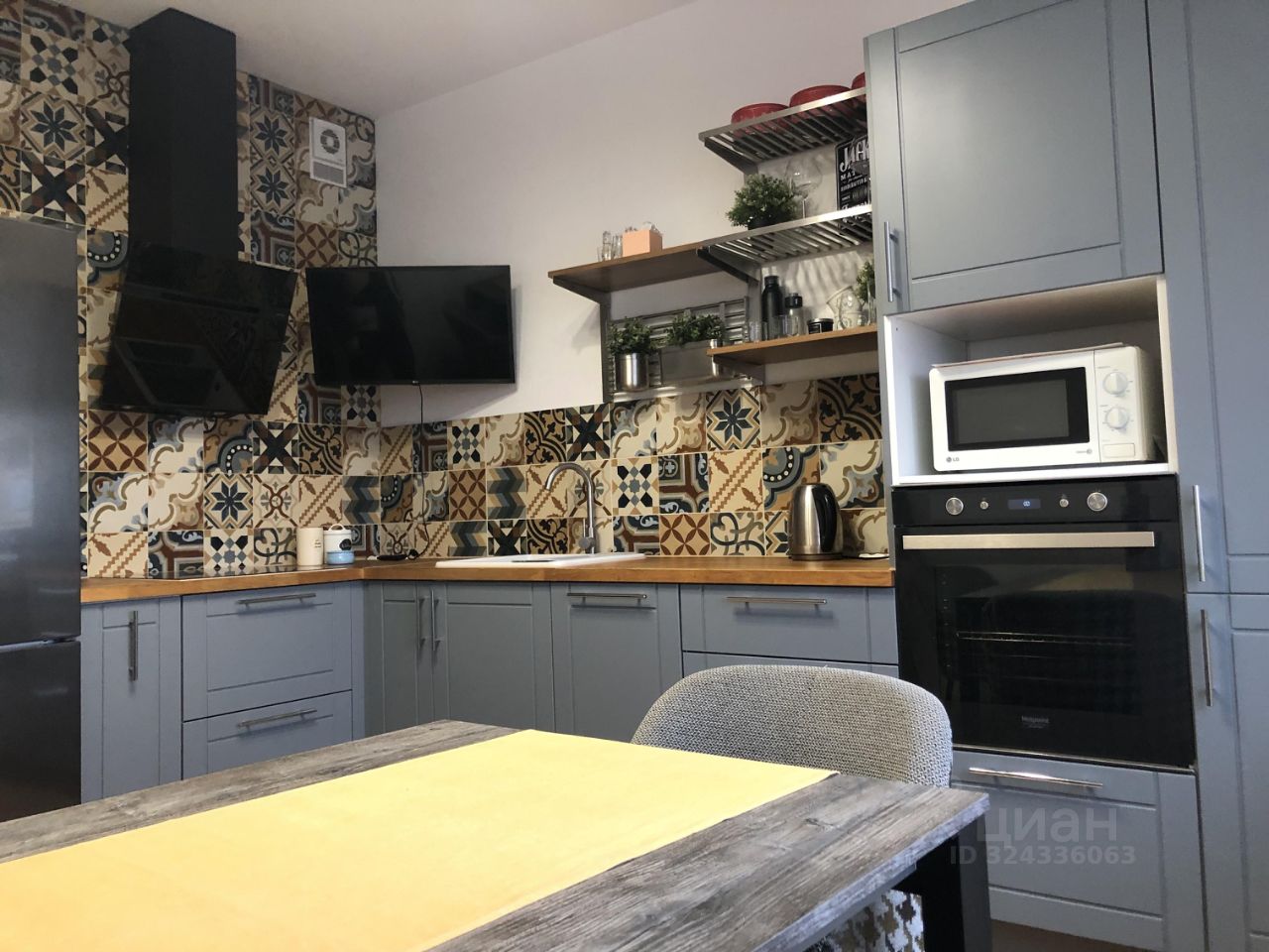 Квартира полностью готова для комфортного проживания. В ней есть вся необходимая мебель — как в комнатах, так и на кухне. Обстановка дополнена современной техникой: холодильником, посудомоечной машиной, телевизором и стиральной машиной. Просторная ванная комната оборудована ванной. Также есть лоджия, где можно организовать уютное место для отдыха.