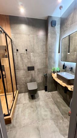 Общая площадь квартиры составляет 37,8 квадратных метров. Высокие потолки и просторная планировка с большой гардеробной обеспечивают комфортное проживание.