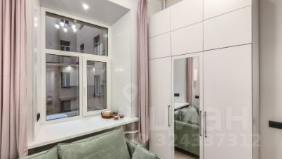 На окне - аккуратные шторы, квартира обращена во двор, подоконник широкий с дополнительным светом и розеткой. Дополнительно установлен бризер для тихой и комфортной вентиляции.