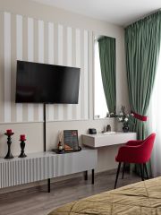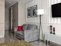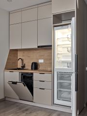 Смарт тв, Кровать 160*200, диван 160*200, обеденный стол, техника на кухне : посудомоечная машина, микроволновка, большой холодильник с морозильной камерой, плита.