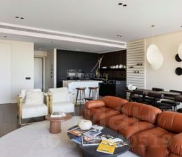 Свет, льющийся через панорамные окна, наполняет комнаты мягким сиянием и создаёт игру теней и бликов, превращая обыденные моменты в маленькие открытия. Интерьер построен на тонких контрастах и продуманных акцентах — он не кричит о роскоши, а деликатно намекает на безупречный вкус и внимание к деталям.