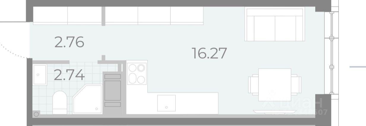 Совмещённый санузел с душевой кабиной готов к эксплуатации. Обратите внимание, что квартира сдаётся без мебели, при необходимости дополнительную обстановку можно обсудить.