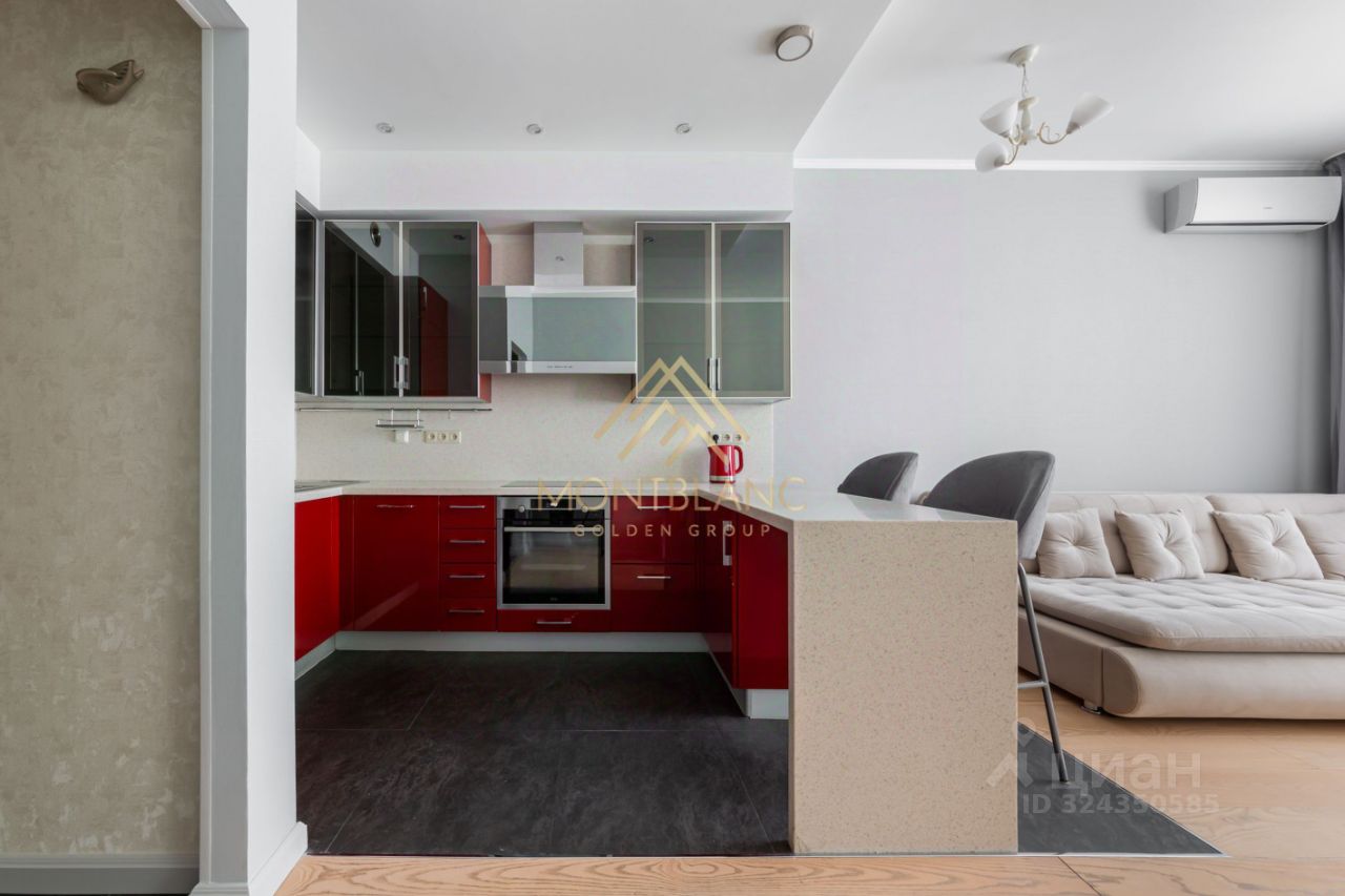 Просторная комната с кухней-гостиной создаёт ощущение воздушности — идеальное пространство, чтобы встречать утро с чашкой кофе, работать в тишине или собирать близких за большим столом.
