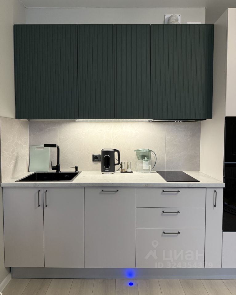 - Кухня с техникой: варочная панель, холодильник, посудомоечная машина, микроволновая печь, духовой шкаф