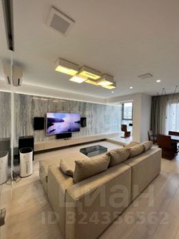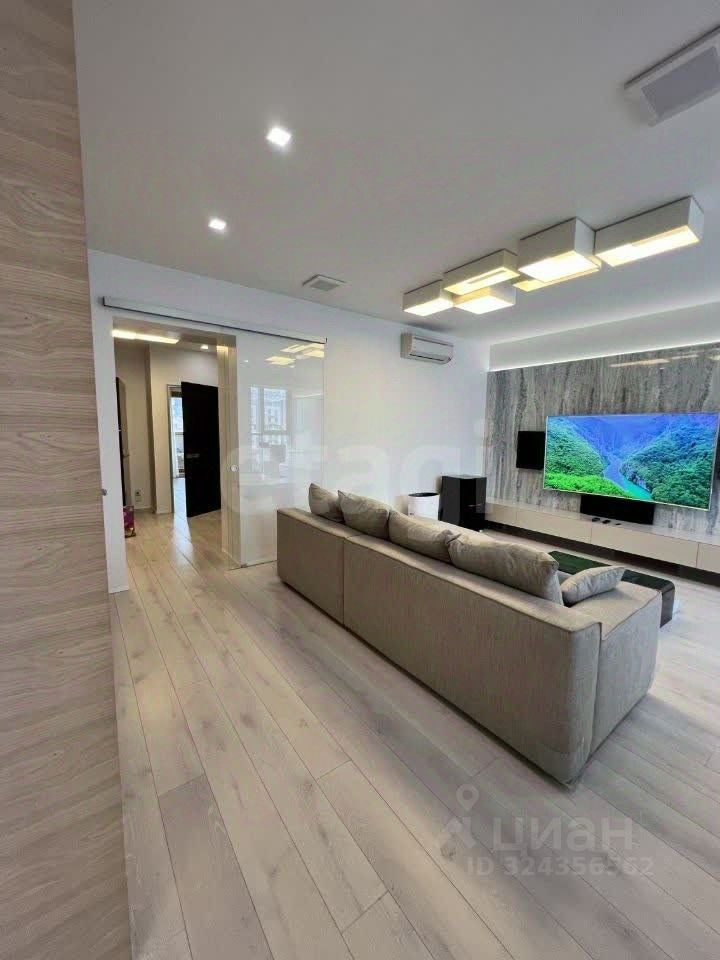 Квартира оснащена системой "умный дом" и продуманным световым сценарием, позволяющим адаптировать атмосферу под любое время суток.