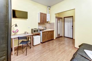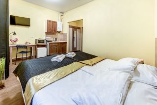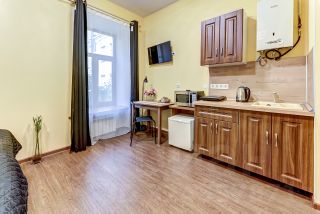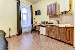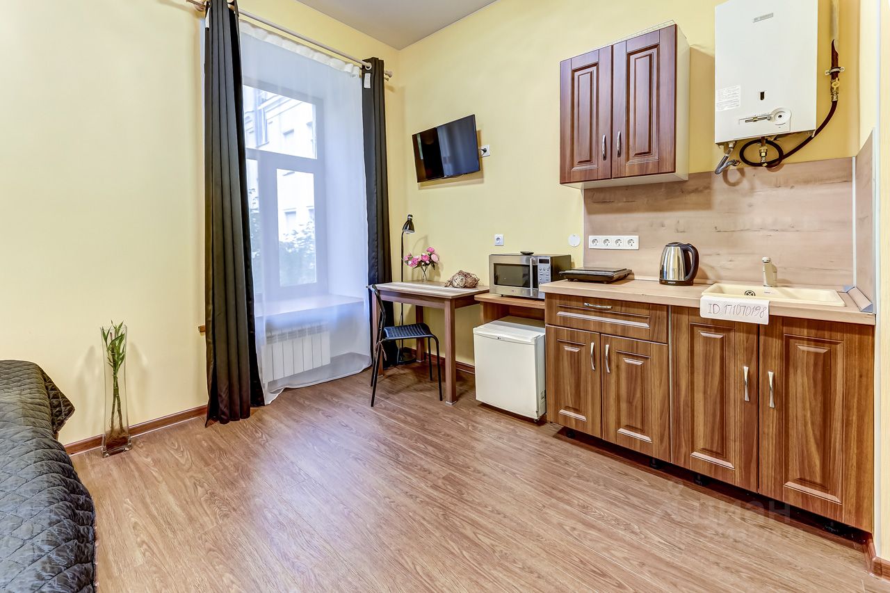 Эта уютная студия расположена в 150 метрах от ст. метро Садовая/Спасская и в 50 метрах от набережной канала Грибоедова. В 2020 году была проведена реновация, и теперь здесь есть все необходимое как для краткосрочного, так и долгосрочного пребывания: двуспальная кровать (возможно размещение как на двуспальной кровати, так и на двух отдельных односпальных), телевизор, холодильник, стол, стулья, шкаф-купе, а также полностью оборудованная кухонная зона: чайник, микроволновая печь, электроплита, набор посуды для 2 человек. Окна-стеклопакеты, поэтому Вашему сну ничто не помешает. В ванной комнате находится душевая кабина, унитаз, раковина, фен.