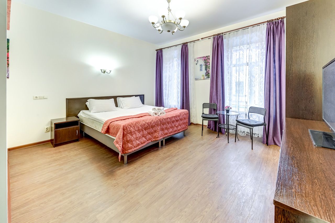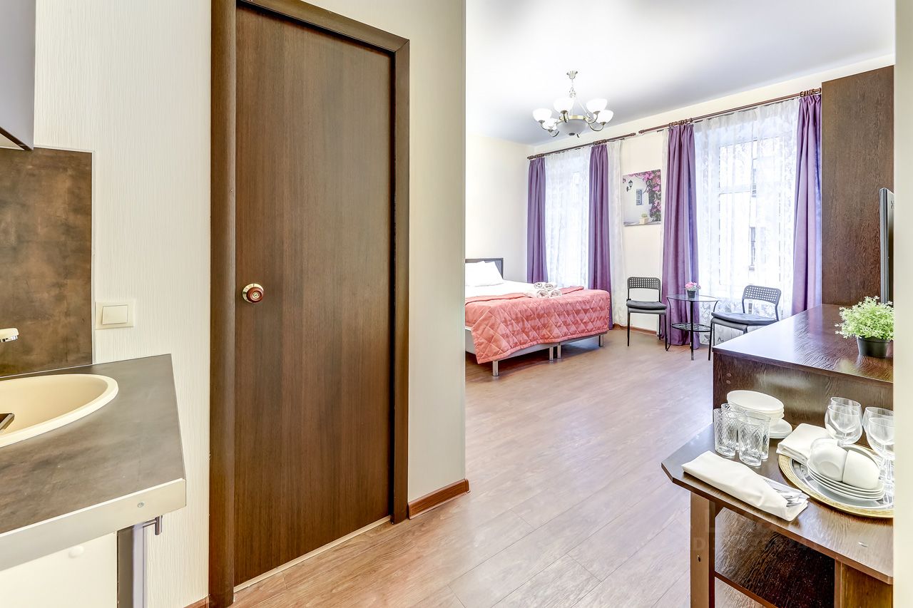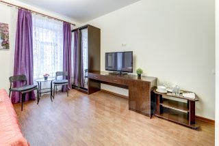 Эта уютная студия расположена в 150 метрах от ст. метро Садовая/Спасская и в 50 метрах от набережной канала Грибоедова. В 2020 году была проведена реновация, и теперь здесь есть все необходимое как для краткосрочного, так и долгосрочного пребывания: двуспальная кровать (возможно размещение как на двуспальной кровати, так и на двух отдельных односпальных), телевизор, холодильник, стол, стулья, шкаф-купе, а также полностью оборудованная кухонная зона: чайник, микроволновая печь, электроплита, набор посуды для 2 человек. Окна-стеклопакеты, поэтому Вашему сну ничто не помешает. В ванной комнате находится душевая кабина, унитаз, раковина, фен.