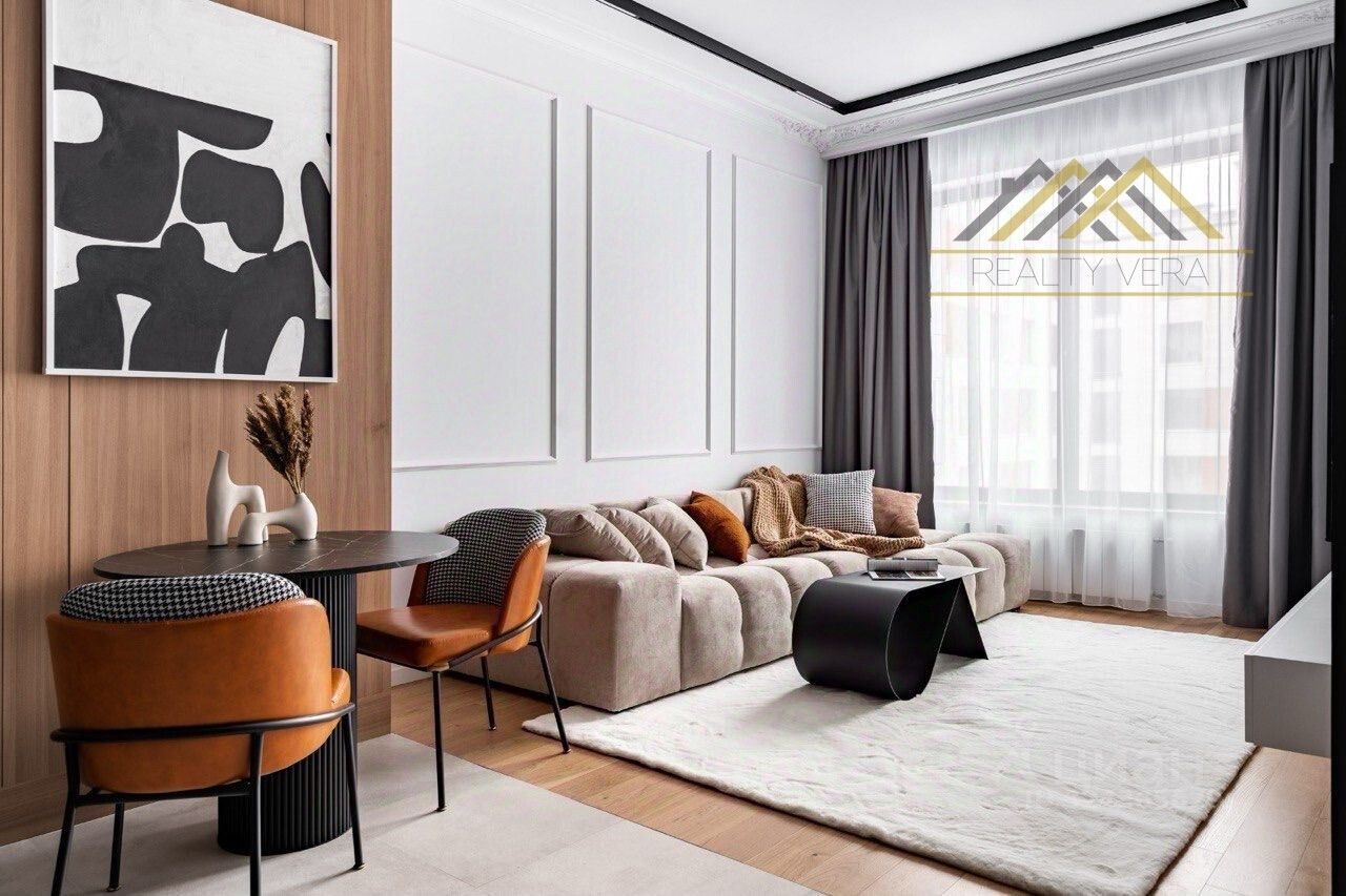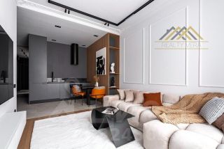 Интерьер выполнен по индивидуальному дизайн-проекту с использованием качественных материалов. Пространство продумано до мелочей и создаёт ощущение спокойствия, комфорта и статуса.