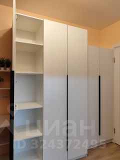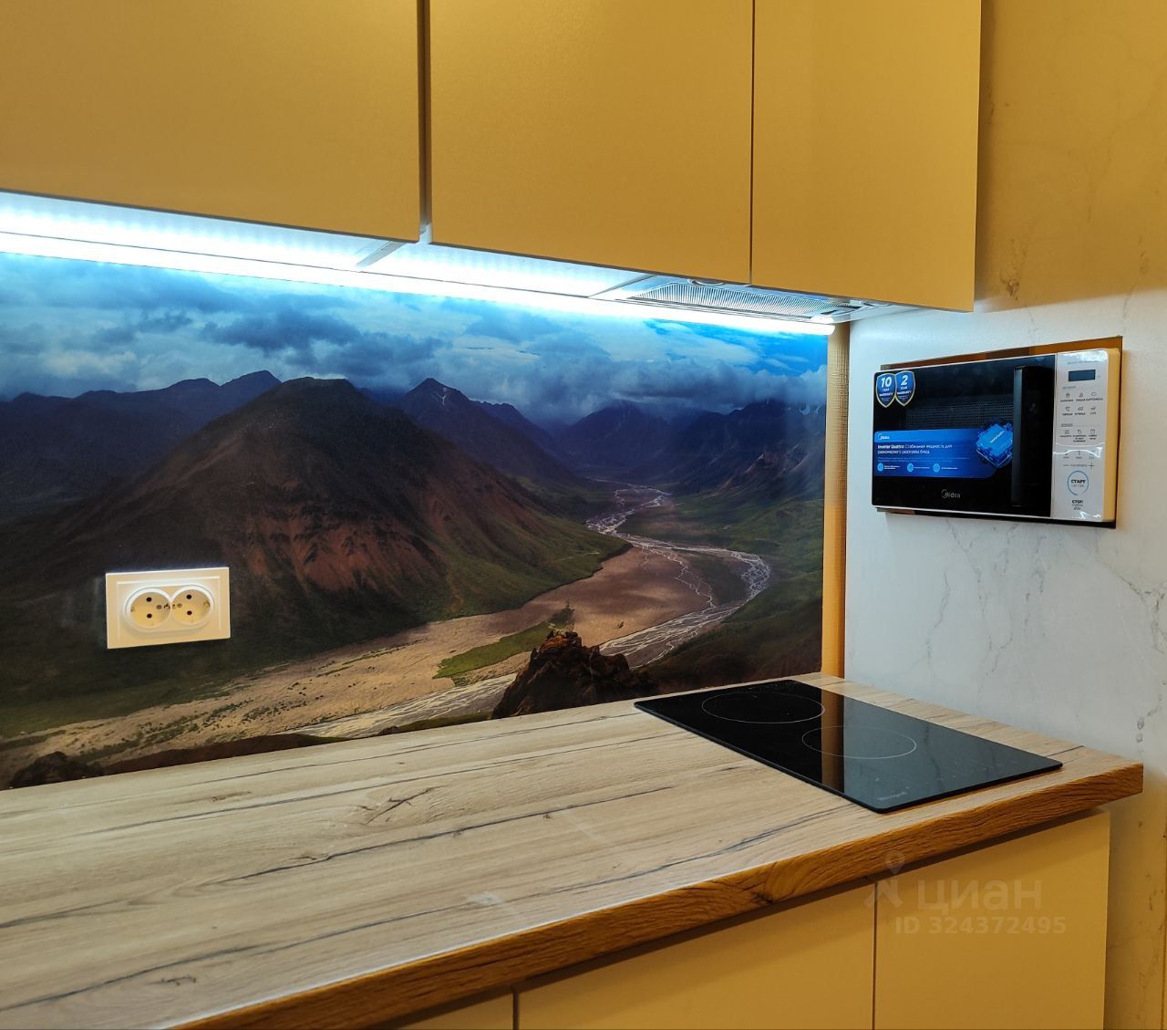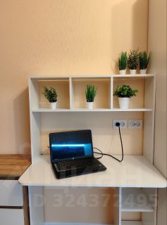 Современная мебель: евродиван- кровать: ровная поверхность для ежедневного сна, легко раскладывается, есть ящики для белья; 2 вместительных шкафа, комод 140 см с выдвижными ящиками для хранения, удобный письменный стол для дистанционной работы, стеллаж удобно разделяет кухонную зону и зону отдыха. Над комодом возможно повесить экран для проектора 150*150. Студия имеет видовые характеристики.