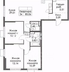 3 изолированные комнаты: 12.12, 13.14, 10.39 м2