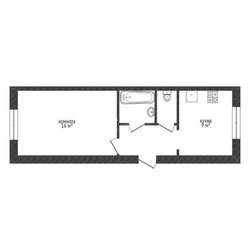 Характеристики: квартира общ.площадью 31 кв.м., комната 16 кв.м., кухня 9 кв.м.