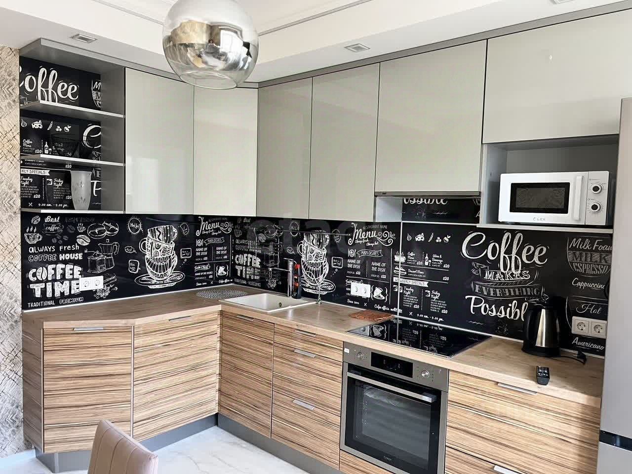 В квартире дополнительно установлен удобный диван на кухне, что создаёт дополнительное пространство для отдыха или гостей.
