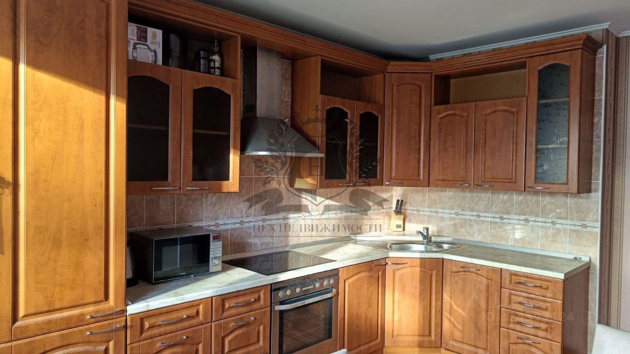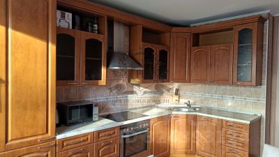 Кухня оборудована качественной мебелью и современной техникой: посудомоечная машина, микроволновая печь, варочная поверхность, духовка, холодильник.