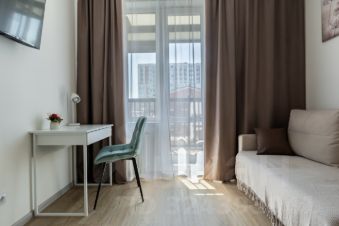 Спальные места: 1 большая двуспальная кровать (180*200) с анатомическим матрасом для сна + .1 раскладной диван ( спальное место 140*180) Можно заселяться с детьми . Внутри ЖК несколько интересных детских площадок.