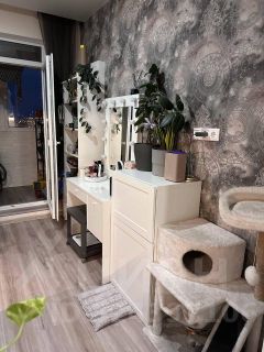Установлена встроенная кухня, с двухкомфорчатой плитой, духовкой и вытяжкой, встроенным холодильником, посудомоечной машинкой, есть электрический чайник и свч. В квартире уютно сделан потолочный свет и грамотно установлены светильники. Зона сна и отдыха - удобный угловой двухспальный диван с подъемным механизмом и местом хранения. Есть журнальный столик со стульями. Шкаф вместительный со штангой, полочками и ящиками. Есть телевизор и интернет. Ванная комната просторная, выложена кафелем, установлена стиральная машинка и душевая кабинка. Дополнительно есть набор нанимателя - сушильная и гладильная доска, утюг и пылесос. В прихожей - открытая вешалка под верхнюю одежду, обувница и зеркало в полный рост, шкаф со штангой под верхнюю одежду. В квартире установлены регулируемые батареи. На лоджии оборудовано рабочее место и зона отдыха, есть розетка.