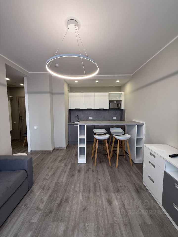 кухня-гостиная 18 м , с раскладывающимся диваном для комфортного приема гостей и телевизором.