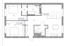 - Два полноценных санузла (две душевые и ванная), теплые полы;